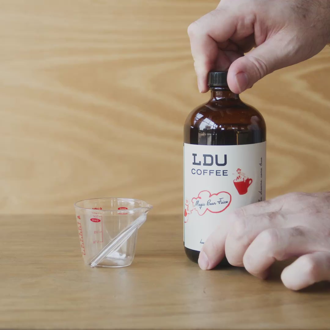 Pour your 1oz of Magic Bean Juice into cold water and ice! Then you're done!